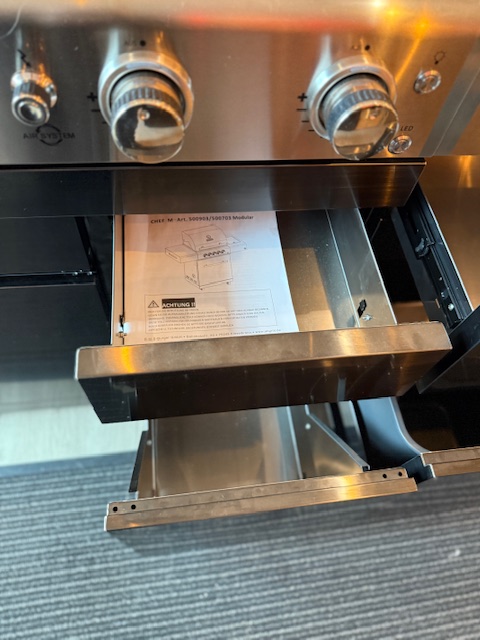 - Inkl. Steakzonenschrank rechts, mit zwei Schubladen und Mülleimer