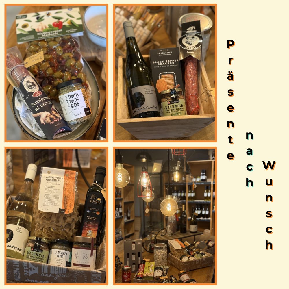 Wir beraten persönlich und individuell, stellen für Dich aber auch gerne mit dir gemeinsam, Geschenke und Firmenpräsente zusammen und verpacken sie liebevoll (Tip: Nicht Andreas ran lassen, der verpackt alles mit Alufolie.)